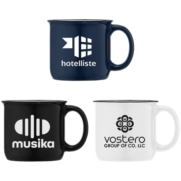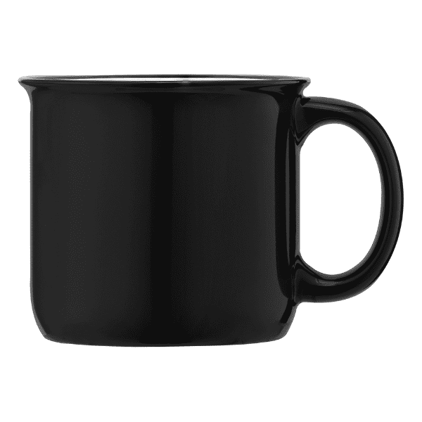 Our Adventure 15-ounce Ceramic Campfire Mug has a high gloss finish inside and outside that elevates the look! The black trim on this cup makes the classic color assortments of black, navy blue, and white colors pop even more. Place company logos, messages, and more on high-value drinkware that makes a difference. Customize with your 1-color silkscreen logo.