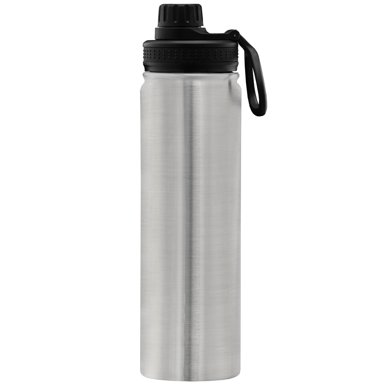 Our Alaska 25-ounce Stainless Steel Double Wall Water Bottle has a powder coating that is chip repellent and durable. Enjoy a Stainless Steel, Double wall vacuum water bottle with screw-on, leakproof lid, and carry handle. This generously sized water bottle can keep drinks cold for up to 6 hours. The Alaska bottle is a great way to help people keep hydrated, while showing off your company logo all day, every day. Customize with your 1-color silkscreen logo.