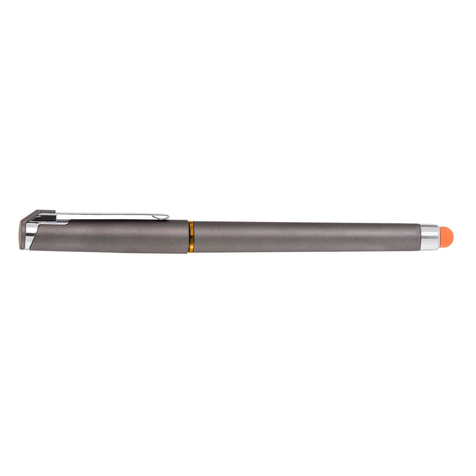 The Islander Softy Gel pen combines two customer favorites: a gel pen and a soft-touch rubberized finish. This ultra-sleek capped pen is a satin gunmetal color with a black rubberized grip and chrome trim and accents. Customize with the choice of a colorful translucent accent where the grip meets the barrel and a matching colorful stylus. A great item for trade shows, job fairs, and so much more. Customize with your logo, imprinted with a 1-color silkscreen.