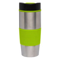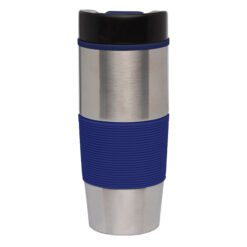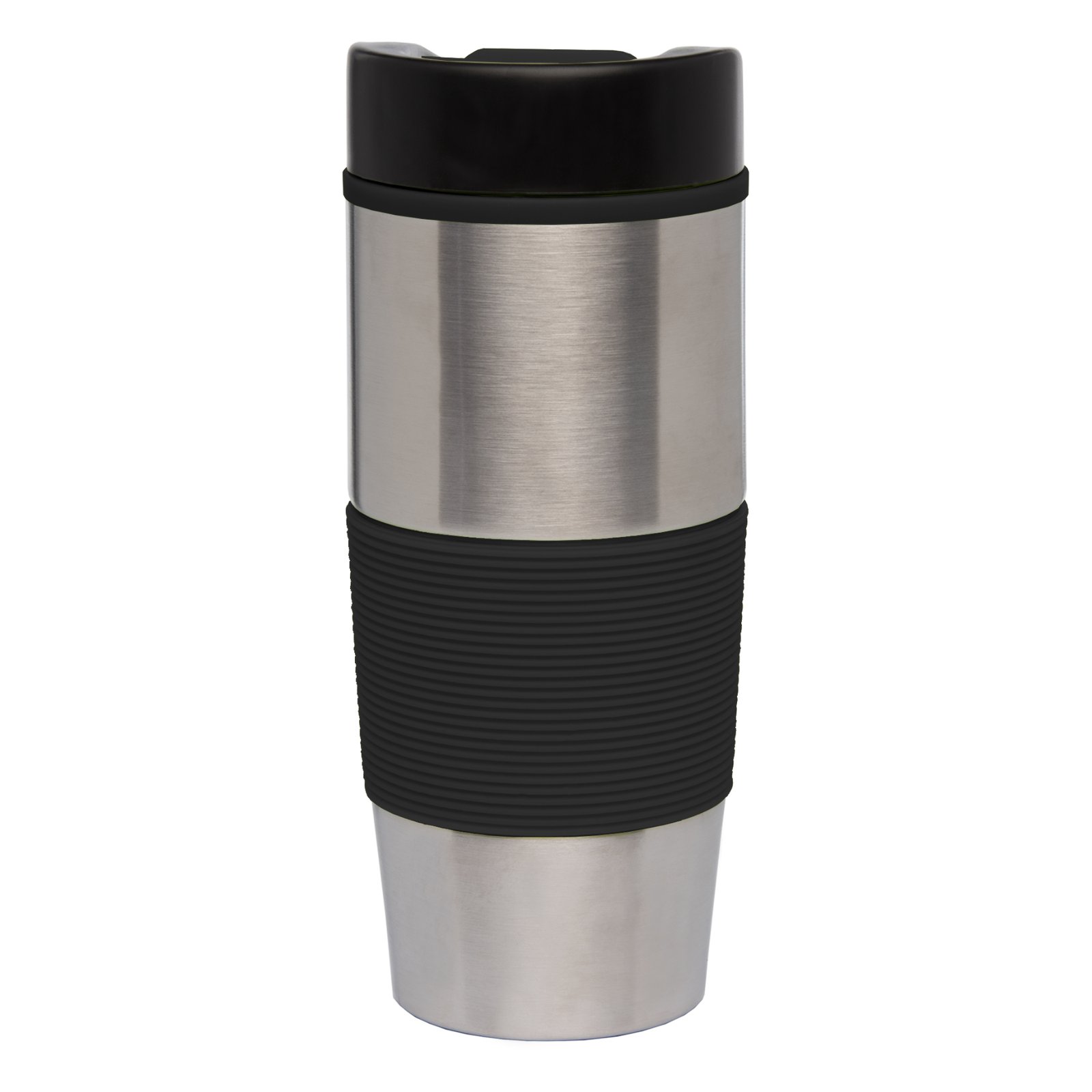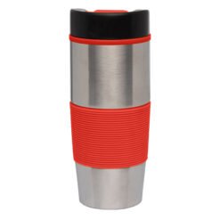 This stainless steel tumbler features a colorful ergonomic silicone grip on the exterior and a matching plastic liner on the interior. The black screw-on lid has a matching colored spill-resistant, slide-top sipping area. Customize with a 1-color silkscreen imprint. CA Prop 65 compliant. BPA free.
