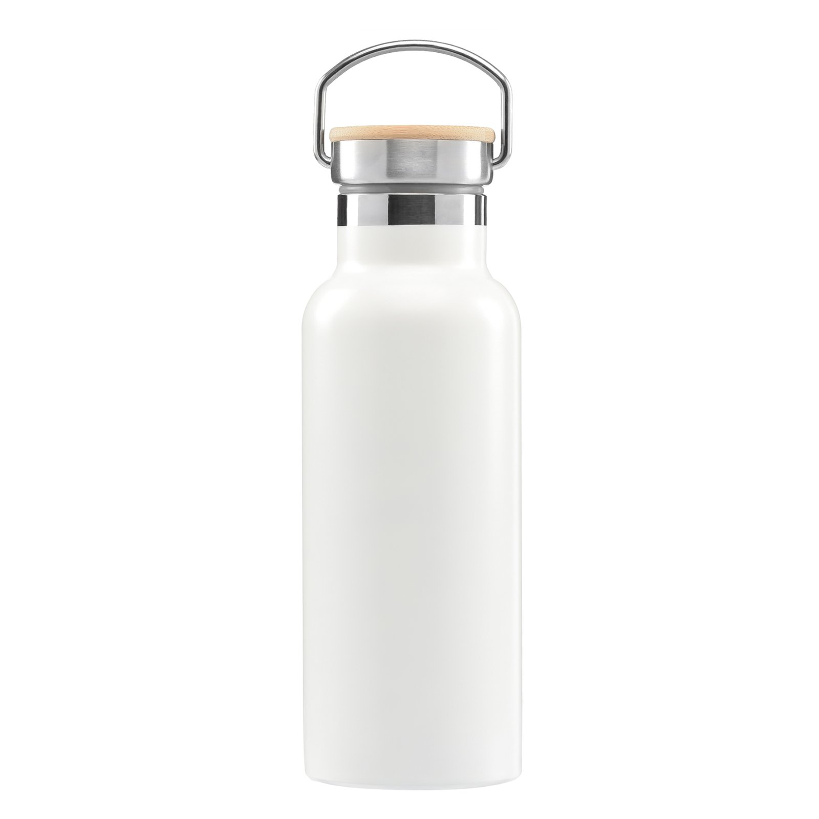Our Oahu stainless water bottle features a double-wall stainless steel base, carrying loop, and screw-on lid with a bamboo top accent. Made for cold beverages, this vacuum-insulated canteen keeps warm for 12 hours and keeps drinks cold for up to 24 hours. Choose from stainless steel to matte color options and customize with a 1-color silkscreen imprint. CA Prop 65 compliant. BPA free.
