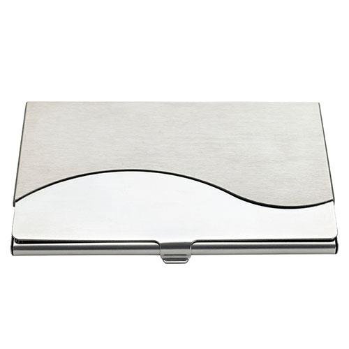 Keep your business cards neat and at your fingertips with this attractive metal case that features a wave design.