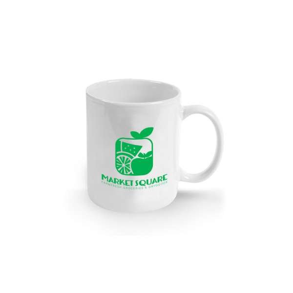 Our Seattle 11 oz C-handle ceramic mug is sure to be a customer favorite! Your company name, logo or advertising message will be the star of the show when silkscreened in one of our 12 standard imprint colors on this white ceramic coffee mug. Passes FDA testing. Hand wash only.