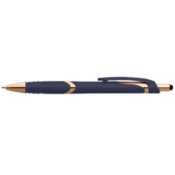 The Solana Softy Rose Gold with Stylus features super-stylish rose gold accents that really shine next to luxurious soft-touch barrel colors. This click-action plastic retractable ballpoint pen features a soft, rubberized barrel with a matching grip, plus a capacitive stylus for use with all your digital touchscreen devices. Customize with a 1-color silkscreen imprint to get your logo and advertising message across at networking events, trade shows, conferences, and other marketing opportunities. This stylish pen is an ideal way to promote your brand and delight your fans!