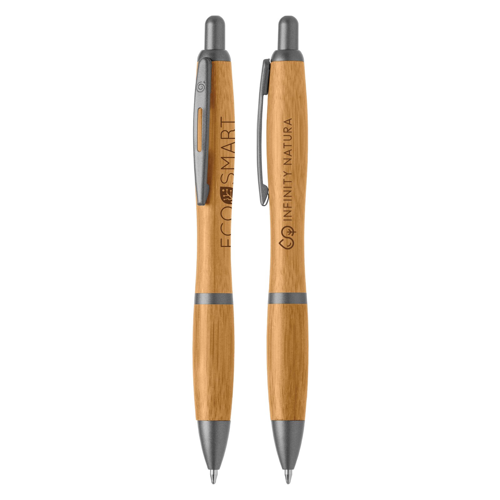 Made with natural, renewable bamboo, this Sophisticate Bamboo pen is an Made Better way to promote your brand. Featuring a curved bamboo barrel and modern gunmetal trim, this click-action pen is a fresh take on an industry-favorite design. Customize with your laser engraved logo.