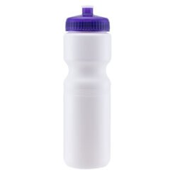 The 28 oz. Velocity Sports Bottle offers a blank white canvas to customize with an impressive full-color direct imprint (ColorJet technology) that features a gloss UV clearcoat to make artwork pop. Made of lightweight HDPE plastic, this bottle has a push-pull spout lid that comes in popular translucent colors. Easily fits into bicycle water bottle holders. Up to 30% recycled material. BPA-free and lead-free. CA Prop 65 Compliant and FDA Approved. Hand wash only.