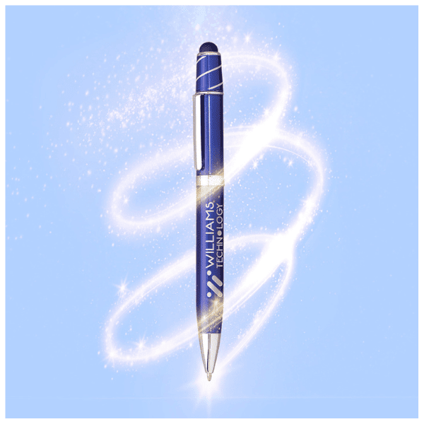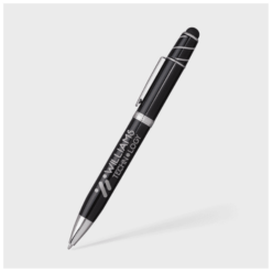 Full color imprint available on White pen only. 2 lines of 20 characters at 8pt. Expanded engraving on Black, Blue, Red, Teal and Gunmetal only.